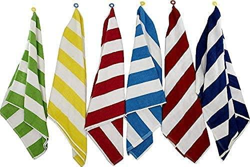 BolBom's, 6 Piece Bath Towel,100% Cotton Colorful Stripe Beach Towel, Oversize 30" x 60” Quick Dry High Absorbent Towel for Bath,Travel,Swim,Pool, Yoga, Hotel,Parties,Guests & Perfect for Daily Use