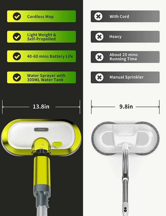 Cordless Electric Mop, Electric Spin Mop with LED Headlight and Water Spray, Up to 60 mins Powerful Floor Cleaner with 300ml Water Tank, Polisher for Hardwood, Tile Floors, Quiet Cleaning & Waxing