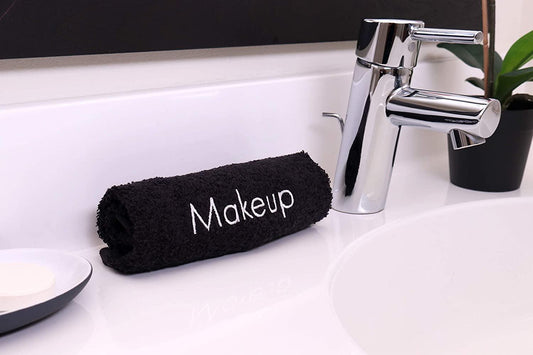 Arkwright Makeup Remover Towels (13x13, 6 Pack) Soft Cotton Washcloths With Makeup Embroidery, Perfect Holiday Gift for Women (Black)